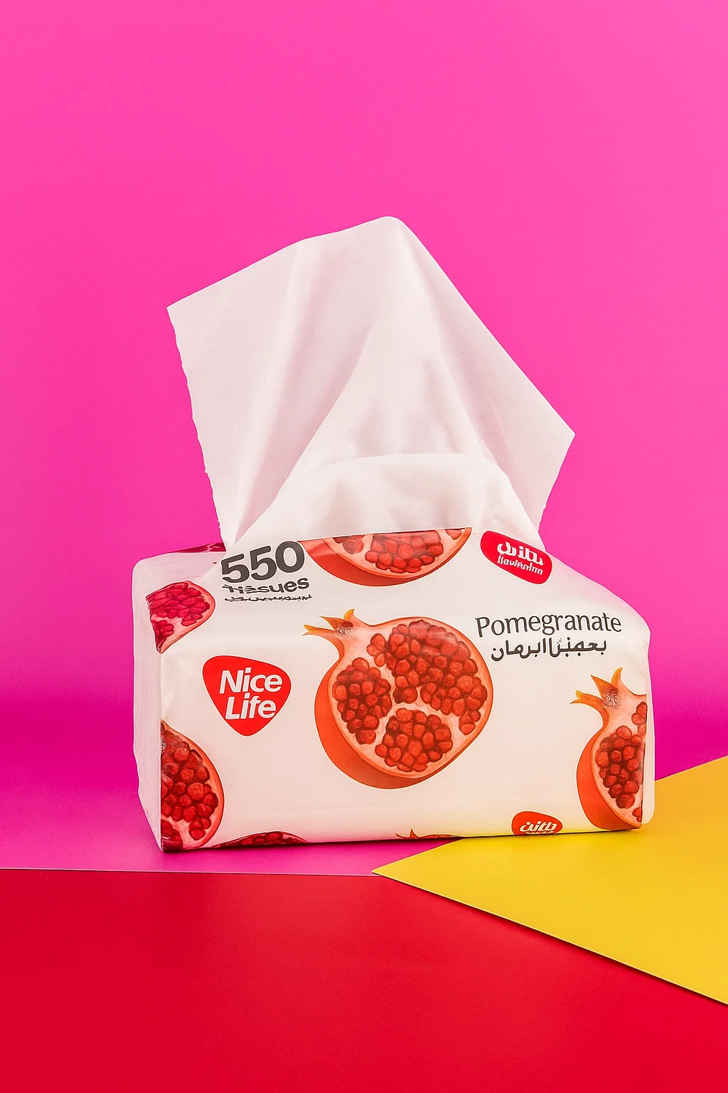 اكتشف النعومة الفائقة والرائحة الغنية مع مناديل نايس لايف برائحة الرمان، المصممة لتمنحك تجربة فريدة تجمع بين النظافة والانتعاش في كل استخدام.